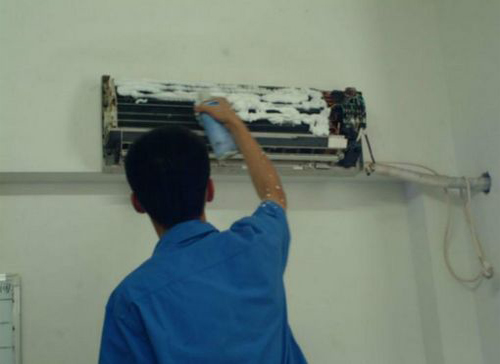 | 桥东空调维修师傅给桥东用户上门维修清洗空调。 |